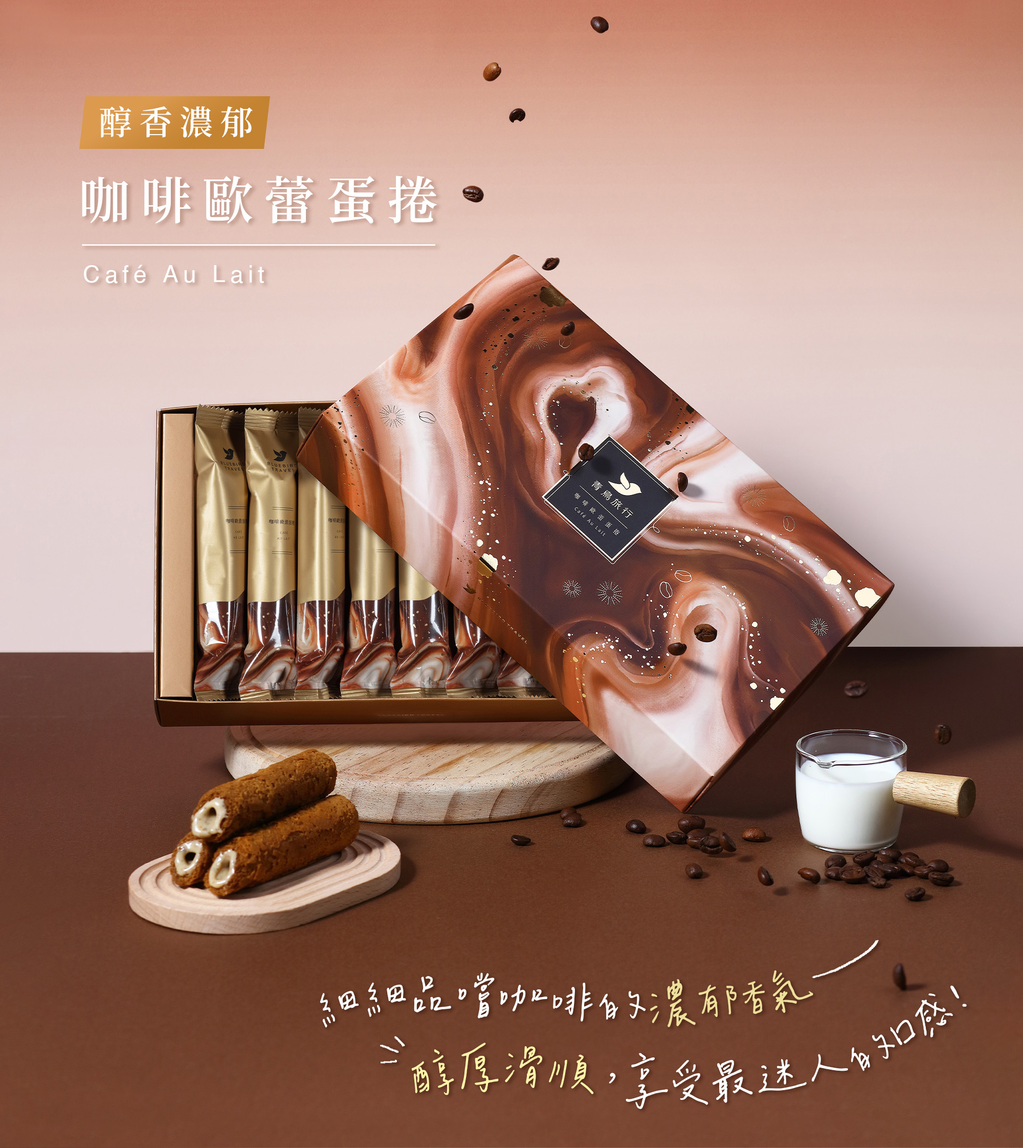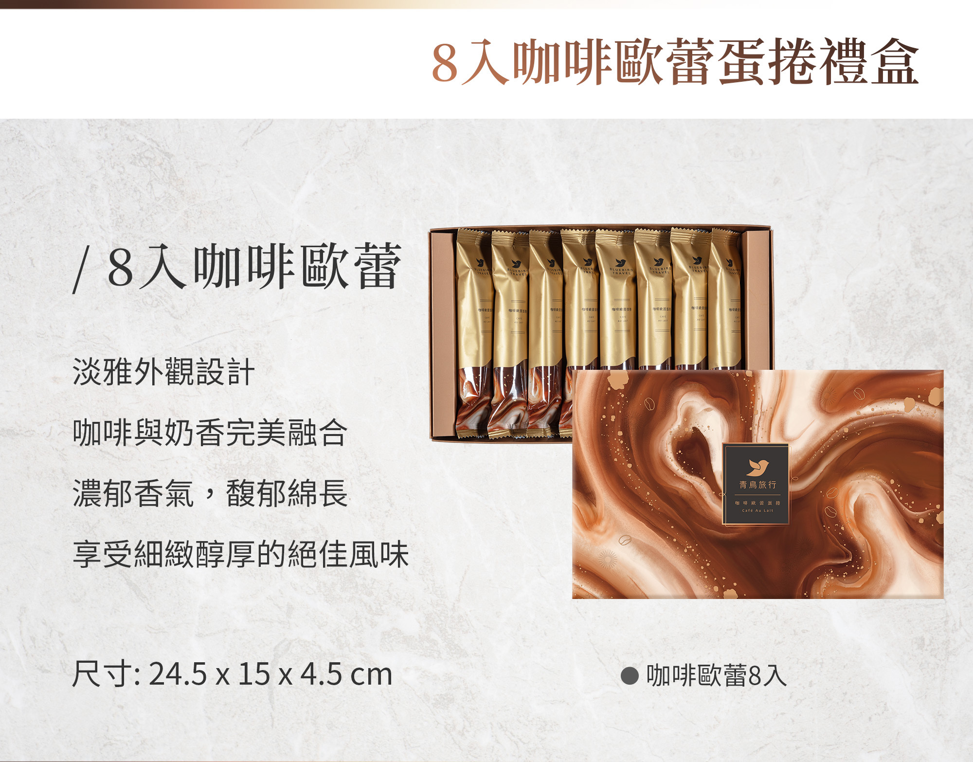 8入旅行盒-咖啡歐蕾蛋捲(附提袋)
